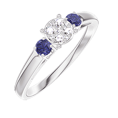 « L'ATELIER » N. 209663Anello Oro bianco 18 carati - Cluster di diamanti naturali Rotonda equivalente 0.5 - Pietre laterali Zaffiro blu 4.9 (16)