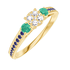 « L'ATELIER » N. 209693Anello Oro giallo 18 carati - Cluster di diamanti naturali Rotonda equivalente 0.5 - Pietre laterali Smeraldo - Incastonatura Zaffiro blu 4.5 (21)