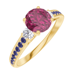 « L'ATELIER » N. 165434Anello Oro giallo 9 carati - Rubino Rotonda 0.7 Carati - Pietre laterali Diamante - Incastonatura Zaffiro blu 4.9 (7)