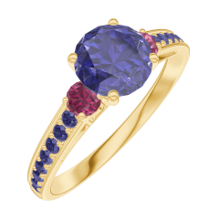 « L'ATELIER » N. 166053Anello Oro giallo 18 carati - Zaffiro blu Rotonda 0.7 Carati - Pietre laterali Rubino - Incastonatura Zaffiro blu 4.9 (7)