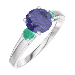 « L'ATELIER » Nº166084Anello Oro bianco 9 carati - Zaffiro blu Rotonda 0.7 Carati - Pietre laterali Smeraldo 4.9 (7)