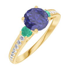 « L'ATELIER » N. 166086Anello Oro giallo 9 carati - Zaffiro blu Rotonda 0.7 Carati - Pietre laterali Smeraldo - Incastonatura Diamante 4.9 (7)