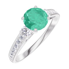 « L'ATELIER » N. 166628Anello Oro bianco 9 carati - Smeraldo Rotonda 0.7 Carati - Pietre laterali Diamante - Incastonatura Diamante 4.9 (7)