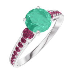 « L'ATELIER » N. 166652Anello Oro bianco 9 carati - Smeraldo Rotonda 0.7 Carati - Pietre laterali Rubino - Incastonatura Rubino 4.9 (7)