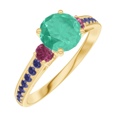 « L'ATELIER » N. 166654Anello Oro giallo 9 carati - Smeraldo Rotonda 0.7 Carati - Pietre laterali Rubino - Incastonatura Zaffiro blu 5 (7)