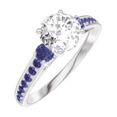 « L'ATELIER » N. 184875Anello Oro bianco 18 carati - Diamante di laboratorio Rotonda 0.7 Carati - Pietre laterali Zaffiro blu - Incastonatura Zaffiro blu 4.9 (7)