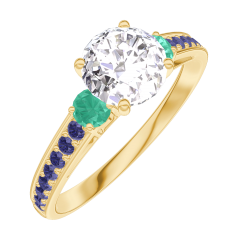 « L'ATELIER » N. 184893Anello Oro giallo 18 carati - Diamante di laboratorio Rotonda 0.7 Carati - Pietre laterali Smeraldo - Incastonatura Zaffiro blu 4.9 (7)