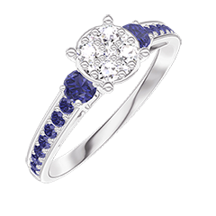 « L'ATELIER » N. 210276Anello Oro bianco 9 carati - Cluster di diamanti naturali Rotonda equivalente 0.7 - Pietre laterali Zaffiro blu - Incastonatura Zaffiro blu 4.9 (7)