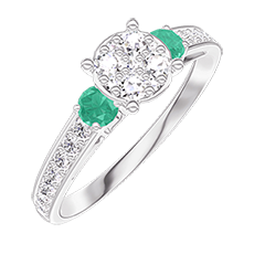 « L'ATELIER » Nº210287Anello Oro bianco 18 carati - Cluster di diamanti naturali Rotonda equivalente 0.7 - Pietre laterali Smeraldo - Incastonatura Diamante 4.9 (7)