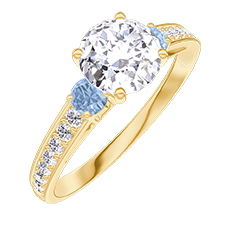 « L'ATELIER » N. 262684Anello Oro giallo 18 carati - Diamante di laboratorio Rotonda 0.7 Carati - Pietre laterali Topazio blu - Incastonatura Diamante di laboratorio 4.9 (7)