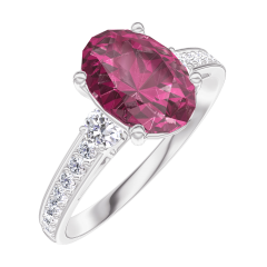 « L'ATELIER » N. 1004857Anello Oro bianco 18 carati - Rubino sintetico Ovale 1 Carati - Pietre laterali Diamante di laboratorio - Incastonatura Diamante di laboratorio 4.8 (10)