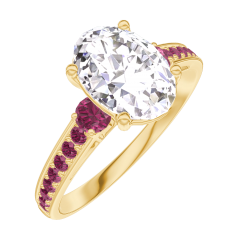 « L'ATELIER » N. 167550Anello Oro giallo 9 carati - Diamante Ovale 1 Carati - Pietre laterali Rubino - Incastonatura Rubino 4.7 (10)