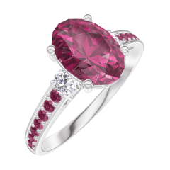 « L'ATELIER » N. 168132Anello Oro bianco 9 carati - Rubino Ovale 1 Carati - Pietre laterali Diamante - Incastonatura Rubino 4.7 (9)