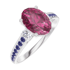 « L'ATELIER » N. 168136Anello Oro bianco 9 carati - Rubino Ovale 1 Carati - Pietre laterali Diamante - Incastonatura Zaffiro blu 4.7 (10)