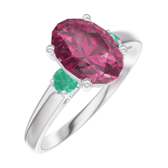 « L'ATELIER » N. 168183Anello Oro bianco 18 carati - Rubino Ovale 1 Carati - Pietre laterali Smeraldo 4.7 (9)