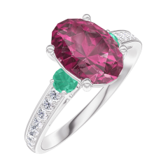 « L'ATELIER » N. 168187Anello Oro bianco 18 carati - Rubino Ovale 1 Carati - Pietre laterali Smeraldo - Incastonatura Diamante 4.7 (10)