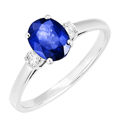 « L'ATELIER » N. 168724Anello Oro bianco 9 carati - Zaffiro blu Ovale 1 Carati - Pietre laterali Diamante 4.7 (10)