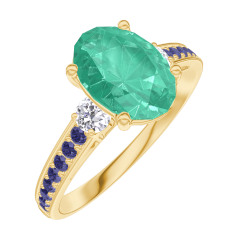 « L'ATELIER » N. 169333Anello Oro giallo 18 carati - Smeraldo Ovale 1 Carati - Pietre laterali Diamante - Incastonatura Zaffiro blu 4.7 (10)