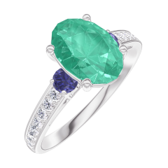 « L'ATELIER » N. 169368Anello Oro bianco 9 carati - Smeraldo Ovale 1 Carati - Pietre laterali Zaffiro blu - Incastonatura Diamante 4.7 (10)
