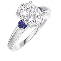 « L'ATELIER » Nº211164Anello Oro bianco 9 carati - Cluster di diamanti naturali Ovale equivalente 1 - Pietre laterali Zaffiro blu 4.7 (9)