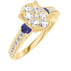 « L'ATELIER » N. 211165Anello Oro giallo 18 carati - Cluster di diamanti naturali Ovale equivalente 1 - Pietre laterali Zaffiro blu - Incastonatura Diamante 4.8 (9)
