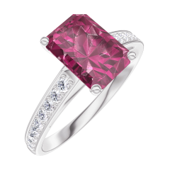 « L'ATELIER » N. 168008Anello Oro bianco 9 carati - Rubino Rettangolo 1 Carati - Incastonatura Diamante 4.6 (5)