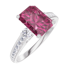 « L'ATELIER » N. 168028Anello Oro bianco 9 carati - Rubino Rettangolo 1 Carati - Pietre laterali Diamante - Incastonatura Diamante 4.6 (5)