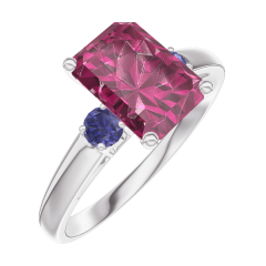 « L'ATELIER » N. 168064Anello Oro bianco 9 carati - Rubino Rettangolo 1 Carati - Pietre laterali Zaffiro blu 4.4 (8)