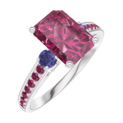 « L'ATELIER » N. 168071Anello Oro bianco 18 carati - Rubino Rettangolo 1 Carati - Pietre laterali Zaffiro blu - Incastonatura Rubino 4.5 (8)