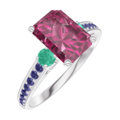 « L'ATELIER » N. 168095Anello Oro bianco 18 carati - Rubino Rettangolo 1 Carati - Pietre laterali Smeraldo - Incastonatura Zaffiro blu 4.4 (8)
