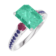 « L'ATELIER » N. 169256Anello Oro bianco 9 carati - Smeraldo Rettangolo 1 Carati - Pietre laterali Rubino - Incastonatura Zaffiro blu 4.4 (8)