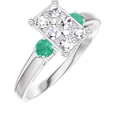 « L'ATELIER » N. 211083Anello Oro bianco 18 carati - Cluster di diamanti naturali Rettangolo equivalente 1 - Pietre laterali Smeraldo 4.4 (8)