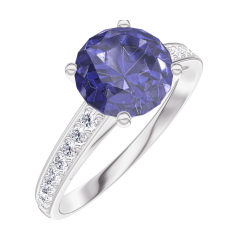 « L'ATELIER » N. 1005082Anello Oro bianco 9 carati - Zaffiro sintetico Rotonda 1 Carati - Incastonatura Diamante di laboratorio 4.7 (15)