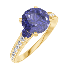 « L'ATELIER » N. 168466Anello Oro giallo 9 carati - Zaffiro blu Rotonda 1 Carati - Pietre laterali Zaffiro blu - Incastonatura Diamante 4.7 (15)