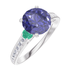 « L'ATELIER » Nº168488Anello Oro bianco 9 carati - Zaffiro blu Rotonda 1 Carati - Pietre laterali Smeraldo - Incastonatura Diamante 4.8 (14)