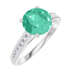 « L'ATELIER » N. 169008Anello Oro bianco 9 carati - Smeraldo Rotonda 1 Carati - Incastonatura Diamante 4.8 (14)
