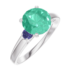 « L'ATELIER » N. 169064Anello Oro bianco 9 carati - Smeraldo Rotonda 1 Carati - Pietre laterali Zaffiro blu 4.7 (15)