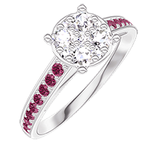 « L'ATELIER » N. 210812Anello Oro bianco 9 carati - Cluster di diamanti naturali Rotonda equivalente 1 - Incastonatura Rubino 4.7 (15)