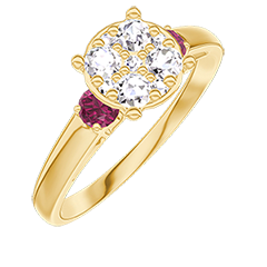« L'ATELIER » Nº210841Anello Oro giallo 18 carati - Cluster di diamanti naturali Rotonda equivalente 1 - Pietre laterali Rubino 4.8 (14)