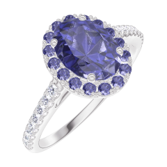 « L'ATELIER » N. 170759Anello Oro bianco 18 carati - Zaffiro blu Ovale 0.5 Carati - Halo Zaffiro blu - Incastonatura Diamante 4.5 (12)