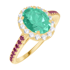« L'ATELIER » N. 171018Anello Oro giallo 9 carati - Smeraldo Ovale 0.5 Carati - Halo Diamante - Incastonatura Rubino 4.8 (12)