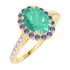 « L'ATELIER » N. 171046Anello Oro giallo 9 carati - Smeraldo Ovale 0.5 Carati - Halo Zaffiro blu - Incastonatura Diamante 4.5 (12)