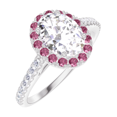 « L'ATELIER » Nº190168Anello Oro bianco 9 carati - Diamante di laboratorio Ovale 0.5 Carati - Halo Rubino - Incastonatura Diamante di laboratorio 4.8 (12)