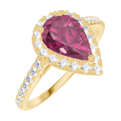« L'ATELIER » N. 170485Anello Oro giallo 18 carati - Rubino Goccia 0.5 Carati - Halo Diamante - Incastonatura Diamante 4.8 (13)