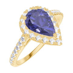 « L'ATELIER » N. 170774Anello Oro giallo 9 carati - Zaffiro blu Goccia 0.5 Carati - Halo Diamante - Incastonatura Diamante 4.8 (13)