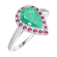 « L'ATELIER » Nº171076Anello Oro bianco 9 carati - Smeraldo Goccia 0.5 Carati - Halo Rubino 5 (13)
