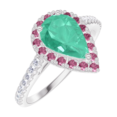 « L'ATELIER » N. 171080Anello Oro bianco 9 carati - Smeraldo Goccia 0.5 Carati - Halo Rubino - Incastonatura Diamante 4.9 (14)