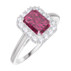 « L'ATELIER » N. 170388Anello Oro bianco 9 carati - Rubino Rettangolo 0.5 Carati - Halo Diamante 4.7 (46)