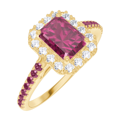 « L'ATELIER » N. 170394Anello Oro giallo 9 carati - Rubino Rettangolo 0.5 Carati - Halo Diamante - Incastonatura Rubino 4.9 (47)