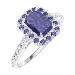 « L'ATELIER » N. 170711Anello Oro bianco 18 carati - Zaffiro blu Rettangolo 0.5 Carati - Halo Zaffiro blu - Incastonatura Diamante 4.8 (49)